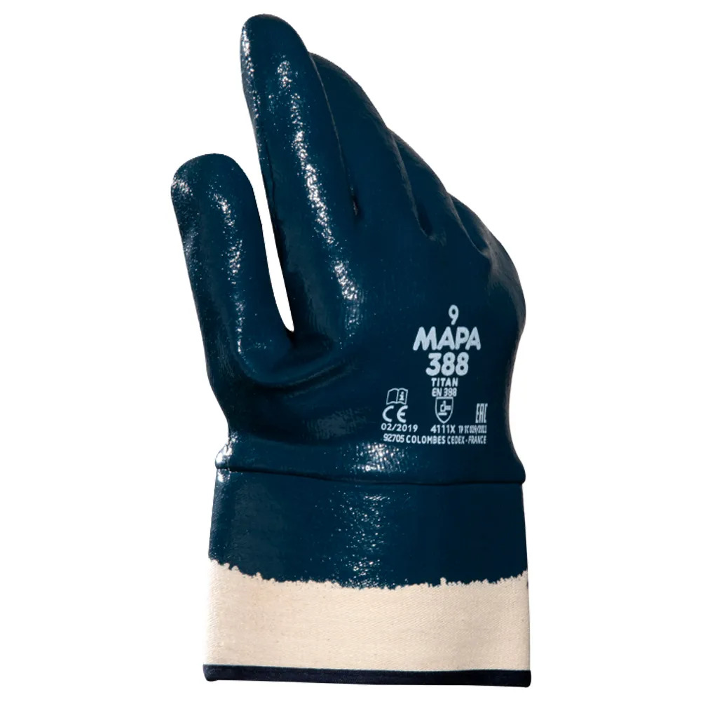 Γάντια MAPA Titan 388 νιτριλίου μπλε πλήρως εμποτισμένα, άνεση και ανθεκτικότητα για βάριες εργασίες, εξαιρετική σε λάδια και γράσα cm 25-27.