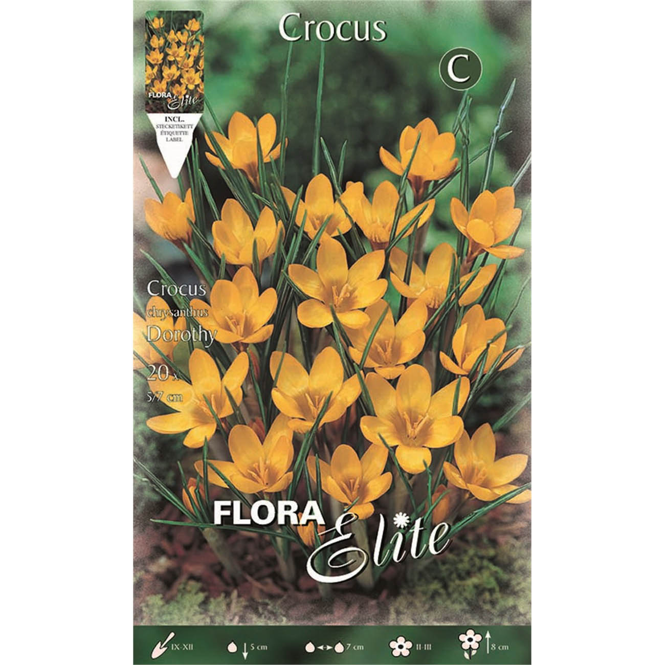 Ο κρόκος είναι ένα πανέμορφο λουλούδι με έντονα χρώματα που συναντάμε σε πάρκα και σε κήπους. Τα περισσότερα είδη κρόκου έχουν καλλωπιστική χρήση στον κήπο. Σημαντικό είναι πως υπάρχουν αρκετά είδη και ποικιλίες κρόκου που είναι ενδημικά στον ελληνικό χώρο, δηλαδή φυτρώνουν από μόνα τους στις περιοχές της χώρας μας και πουθενά αλλού. H κάθε συσκευασία περιέχει 20 βολβούς μεγέθους 5+ που δίνουν ένα εντυπωσιακό κίτρινο χρώμα. Το ύψος του μπορεί να φτάσει στα 8 εκ.