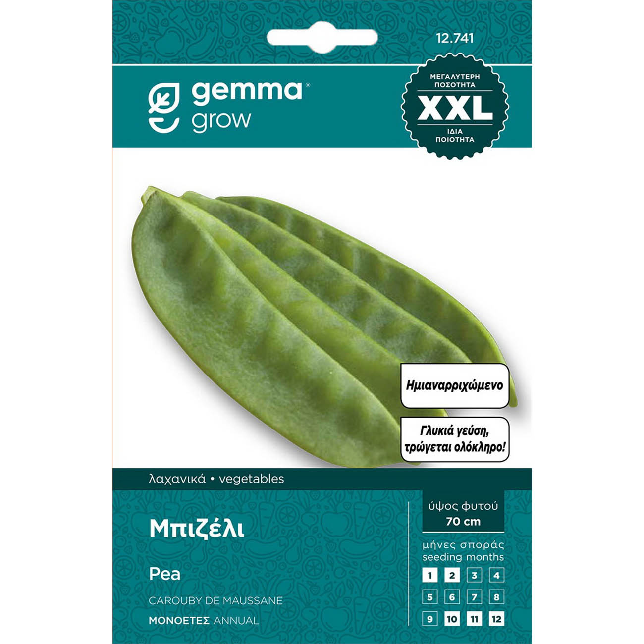 Carouby: μπιζέλι, 10-11 cm μήκος λοβού, 75-80 ημερών