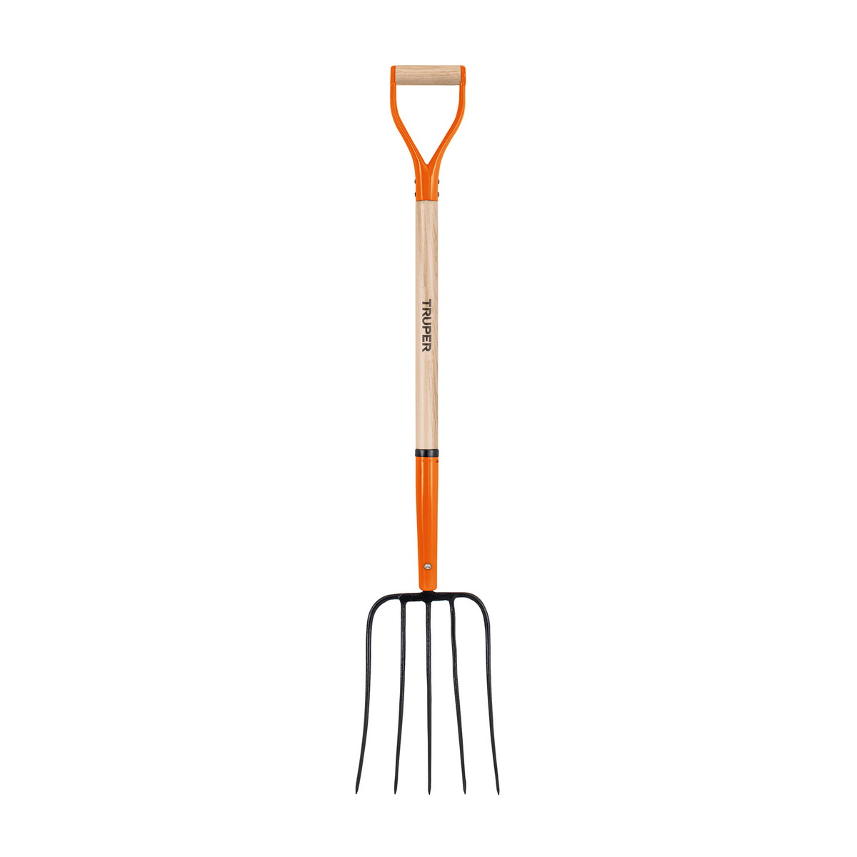Πηρούνα χόρτου με ξύλινο λουστραρισμένο στυλιάρι 86cm και συνολικό ύψος 118cm.
