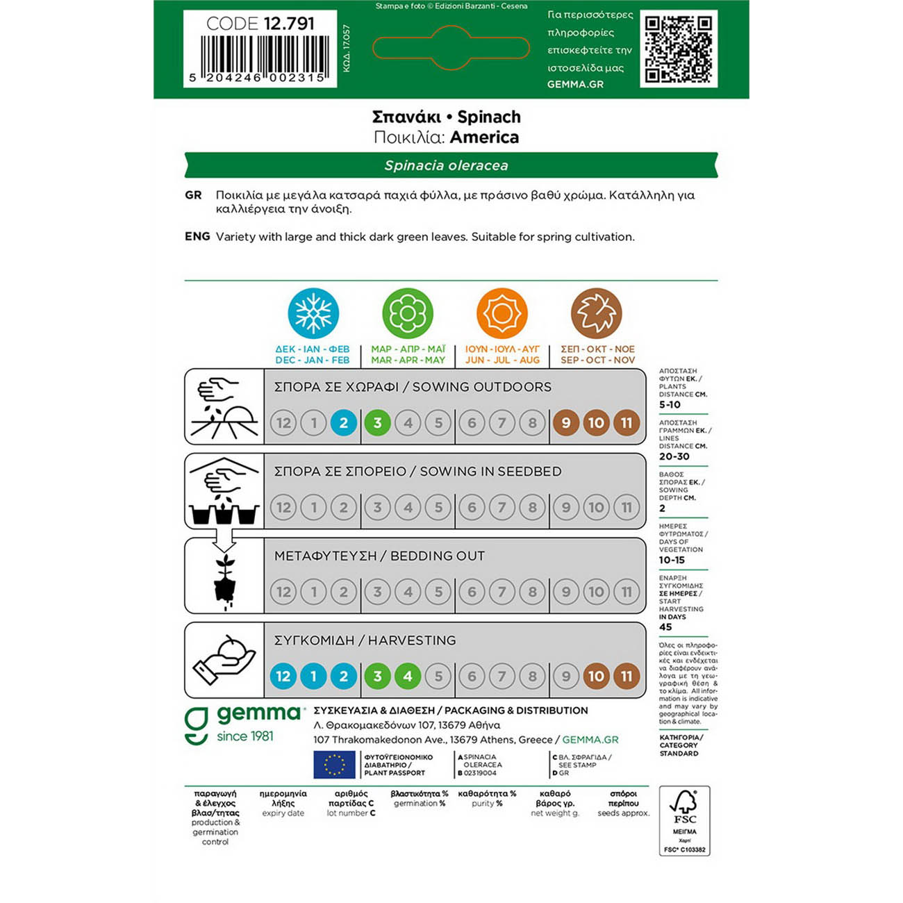 Νew Zealand: αγκαθωτό καλοκαιρινό, 70 ημερών, λείο φύλλωμα τριγωνικού σχήματος σκούρου πράσινου χρώματος (ειδικό για εαρινή/θερινή φύτευση)
