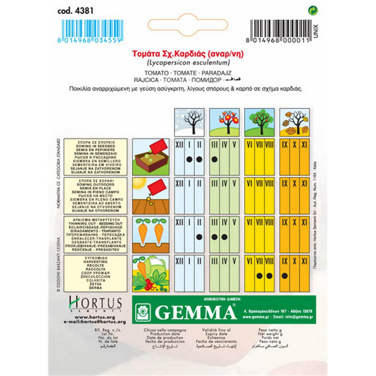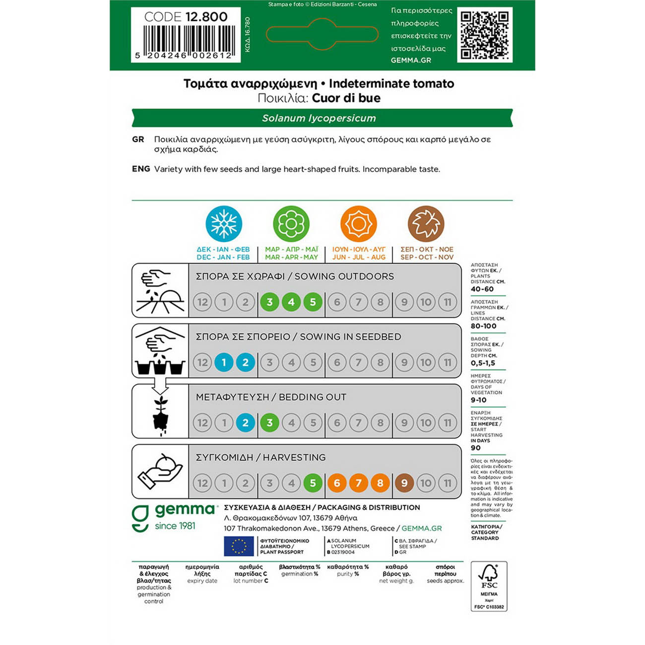 Ιδανικό για σαλάτα ντάκο. Μονοετές. Ποικιλία αναρριχώμενη με γεύση ασύγκριτη, λίγους σπόρους και καρπό μεγάλο σε σχήμα καρδιάς. Απόσταση φυτών (εκ.): 40-60. Απόσταση γραμμών (εκ.): 80-100. Βάθος σποράς (εκ.):0,5-1,5. Ημέρες φυτρώματος: 9-10. Έναρξη συγκομιδής (ημέρες): 90. Ποικιλία: Cuor di bue. 4381. Καρδιά του βουβαλιού.